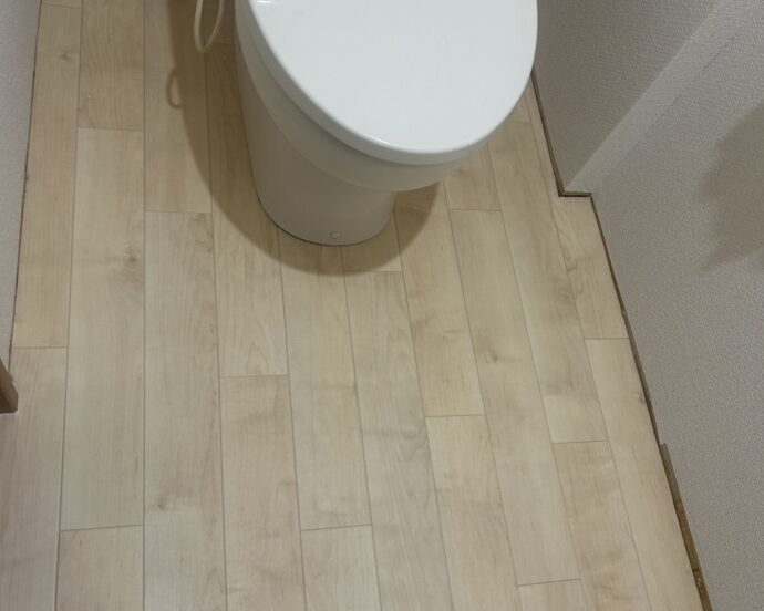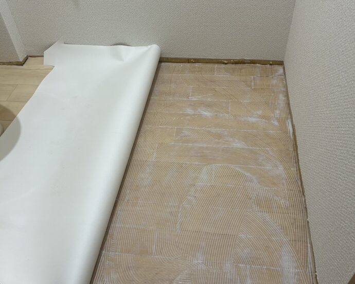 床面・クッションフロア掃除後、上からカバーで貼り付けます。↑