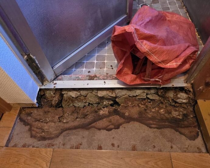 湿気が溜まりやすい箇所のためシロアリの可能性を感じ、点検しました。